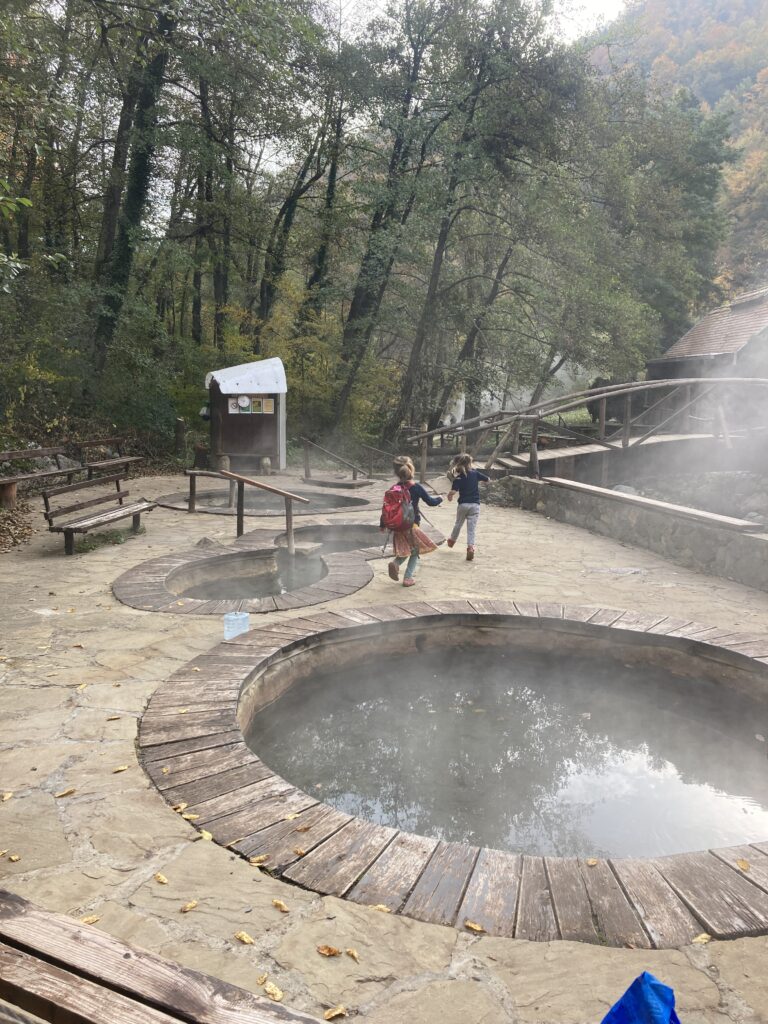 Vesnička je ukrytá hluboko v horách, na hranicích s Kosovem. Cesta sem je dlouhá, úzká, sem tam vydrolená… Jsou tu dva hotely, lázeňské domy a pak přírodní lázně. Volně přístupné bazénky a prameny s horkou termální vodou na konci vesnice. Venku bylo nějakých 12 stupňů, všude padalo zlaté listí a my jsme se povalovali v horké vodě (cca 40 stupňů). Nádhera. Neskutečná nádhera. Místečko je opečované, čisté, byl tu otevřený a čistý záchod.. Co víc si přát.
