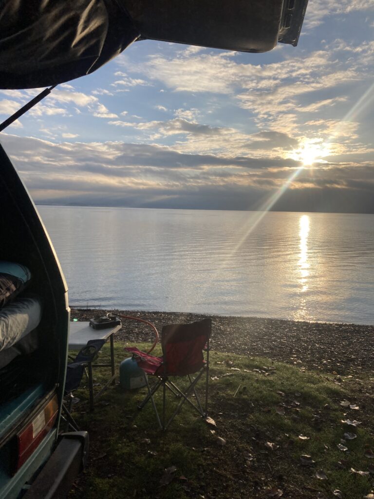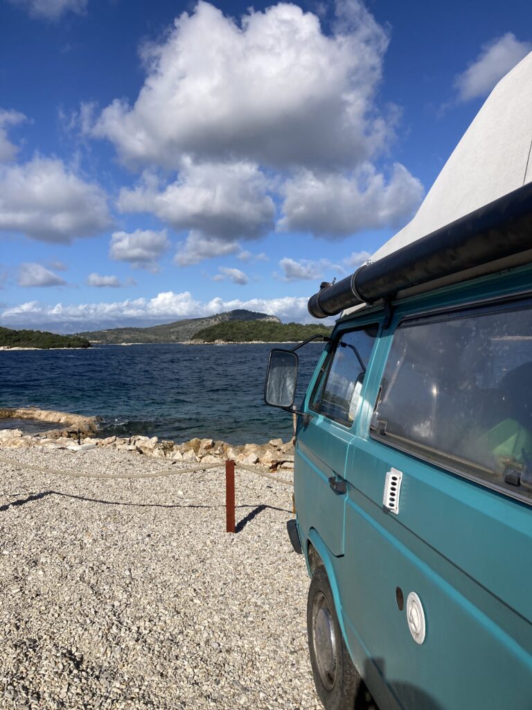 Po sezóně byly všechny kempy zavřené a my se obešli v pohodě bez nich. Wecko jsme vždycky nějaké našli (a lopatka jistila přírodní variantu) a sprchu jsme měli svou na Busíku + ty na pláži.