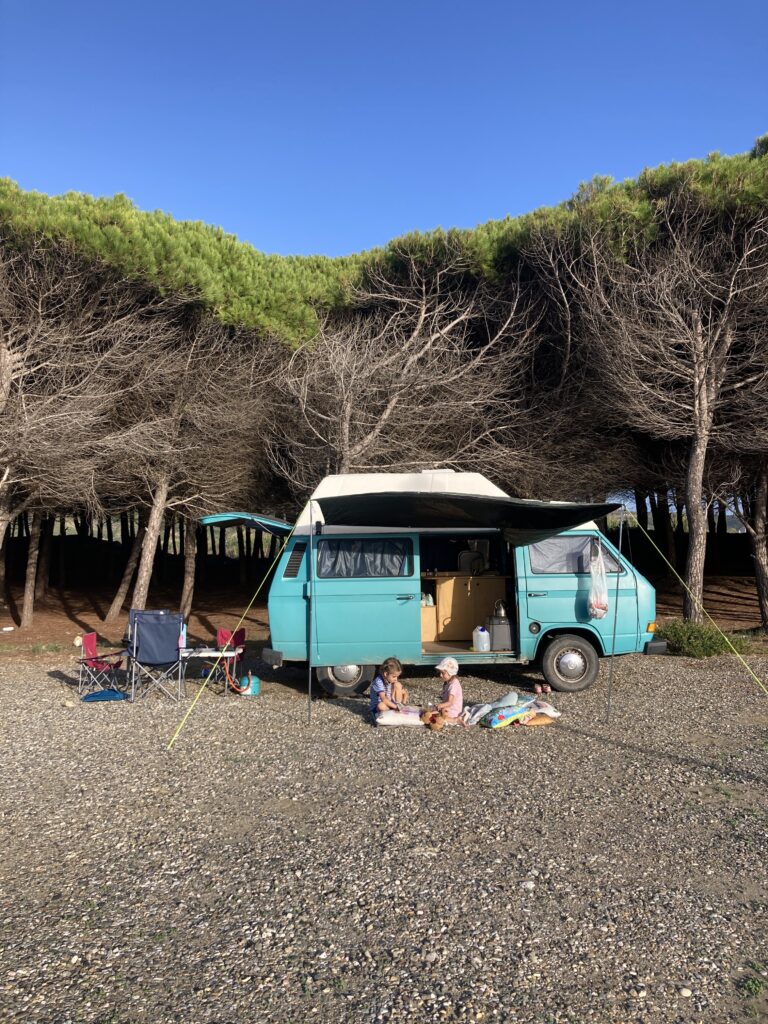 K moři jsme dorazili za tmy, ale holčičky byly ještě vzhůru. A místo jsme našli parádní. Přímo u pláže, za zavřenou plážovou hospůdkou. A nebyli jsme tu sami, už tady dvě dodávky stály. Slaný vzduch nám vyčistil nosy od odpadkového odéru, moře hučelo jako blázen a teplý večer sliboval příjemné plážové radovánky.